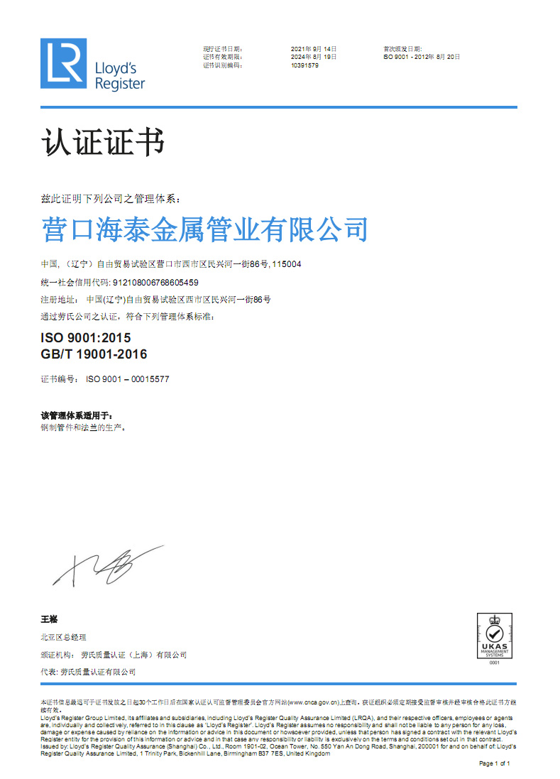 營(yíng)口海泰金屬管業(yè)有限公司成立于2001年,是專(zhuān)業(yè)生產(chǎn)管道配件的制造經(jīng)營(yíng)企業(yè)。公司占地面積兩萬(wàn)五千平方米,坐落于中國(guó)遼寧省港口城市營(yíng)口。營(yíng)口一市兩港(營(yíng)口港、鲅魚(yú)圈港),東臨大連港四季通航,陸路運(yùn)輸四通八達(dá)交通便利。
